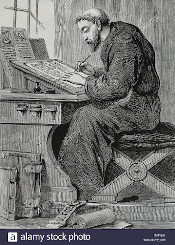 Previo a la imprenta , la reproducción de literatura era una gran tarea intelectual y física mayormente a cargo de los monjes en los monasterios medievales